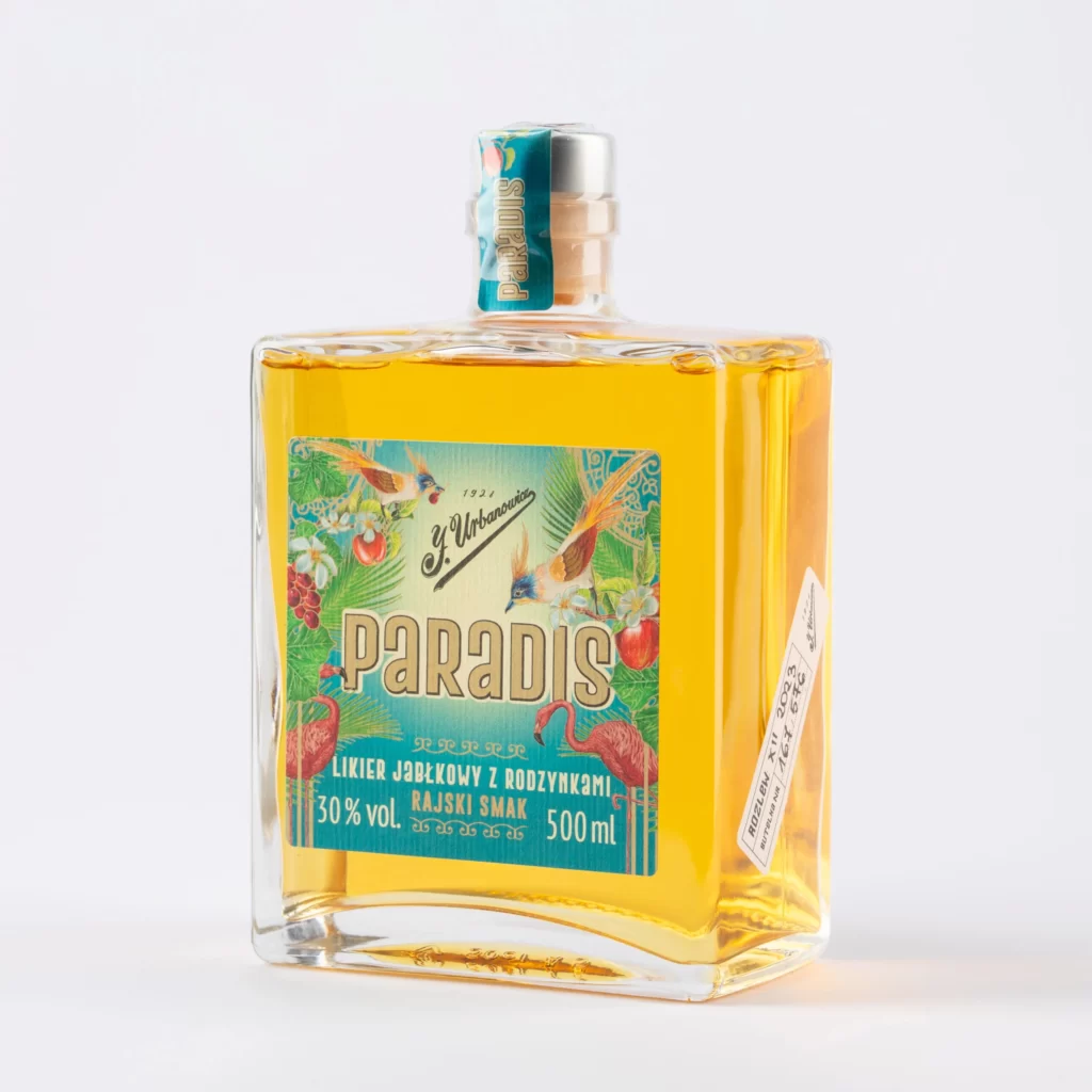 Rzemieślniczy likier według receptury J. Urbanowicza z 1928 roku, stworzony z soczystych polskich jabłek i rodzynek sułtańskich dojrzewających w tropikalnym słońcu.